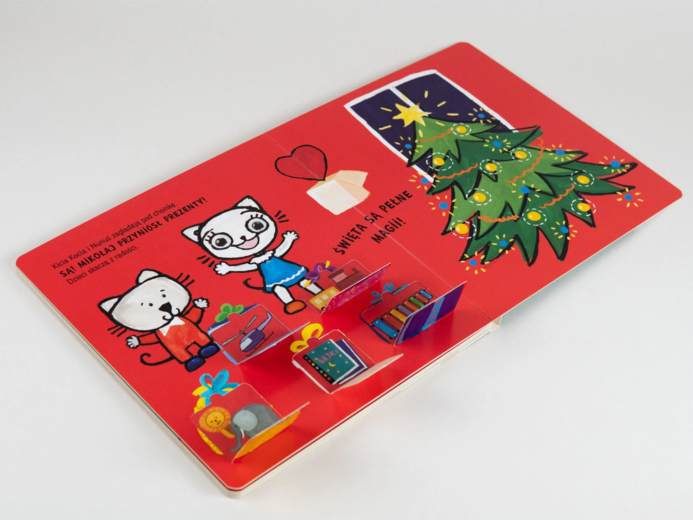 Książki z okienkami to ulubiona forma zabawy maluchów, pozwalająca im odkrywać świat w interaktywny sposób. „Kicia Kocia i Nunuś. Idą święta” oferuje mnóstwo niespodzianek do odkrycia i daje dzieciom możliwość wspólnej zabawy z ulubioną bohaterką. Maluchy mogą pomagać Nunusiowi, poznawać świąteczne zwyczaje, a nawet szukać ukrytych przedmiotów w książce.