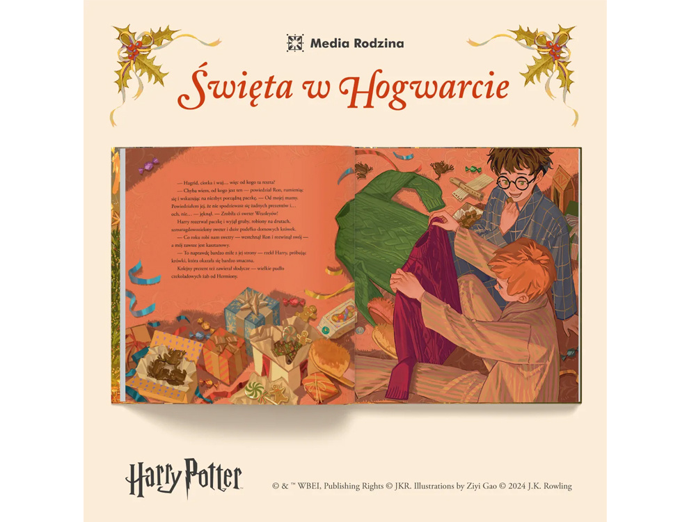 Święta w Hogwarcie to jeden z najbardziej uwielbianych fragmentów książki Harry Potter i Kamień Filozoficzny, teraz w pięknej, ilustrowanej wersji. Dzięki barwnym i pełnym detali ilustracjom artystki Ziyi Gao, książka wypełniona jest magiczną, świąteczną atmosferą towarzyszącą pierwszemu pobytowi Harry’ego w Hogwarcie w okresie Bożego Narodzenia.