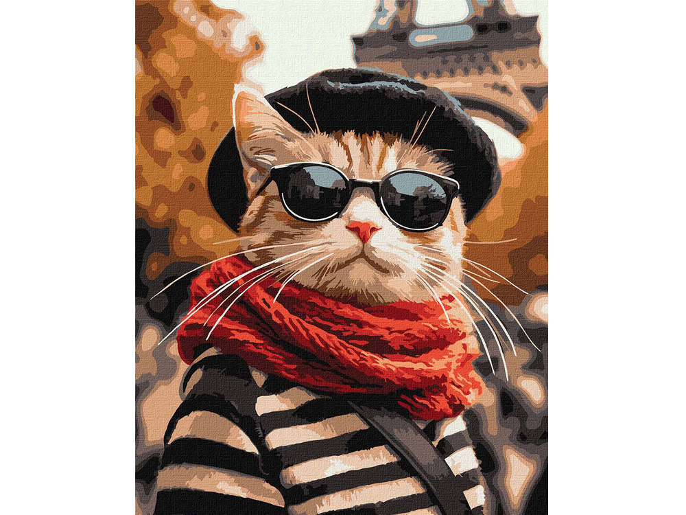 Obraz na płótnie z drewnianą ramą "KHO6705 Puszysty w Paryżu"