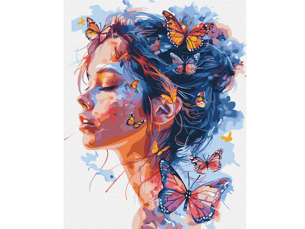 Obraz na płótnie z drewnianą ramą "Dziewczyna i motyle"